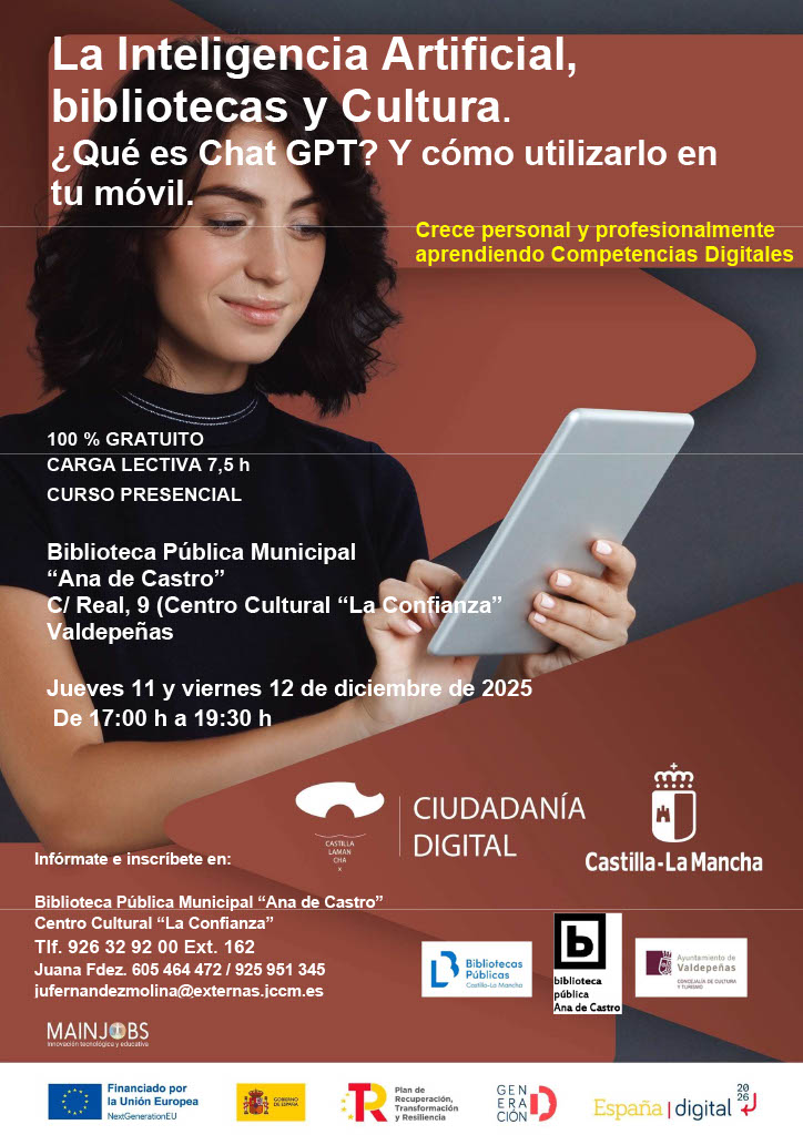 Desde la Biblioteca Pública Municipal "Ana de Castro" en el marco del proyecto Ciudadanía Digital del Gobierno Regional de Castilla-La Mancha. Se va a llevar a cabo la el curso: